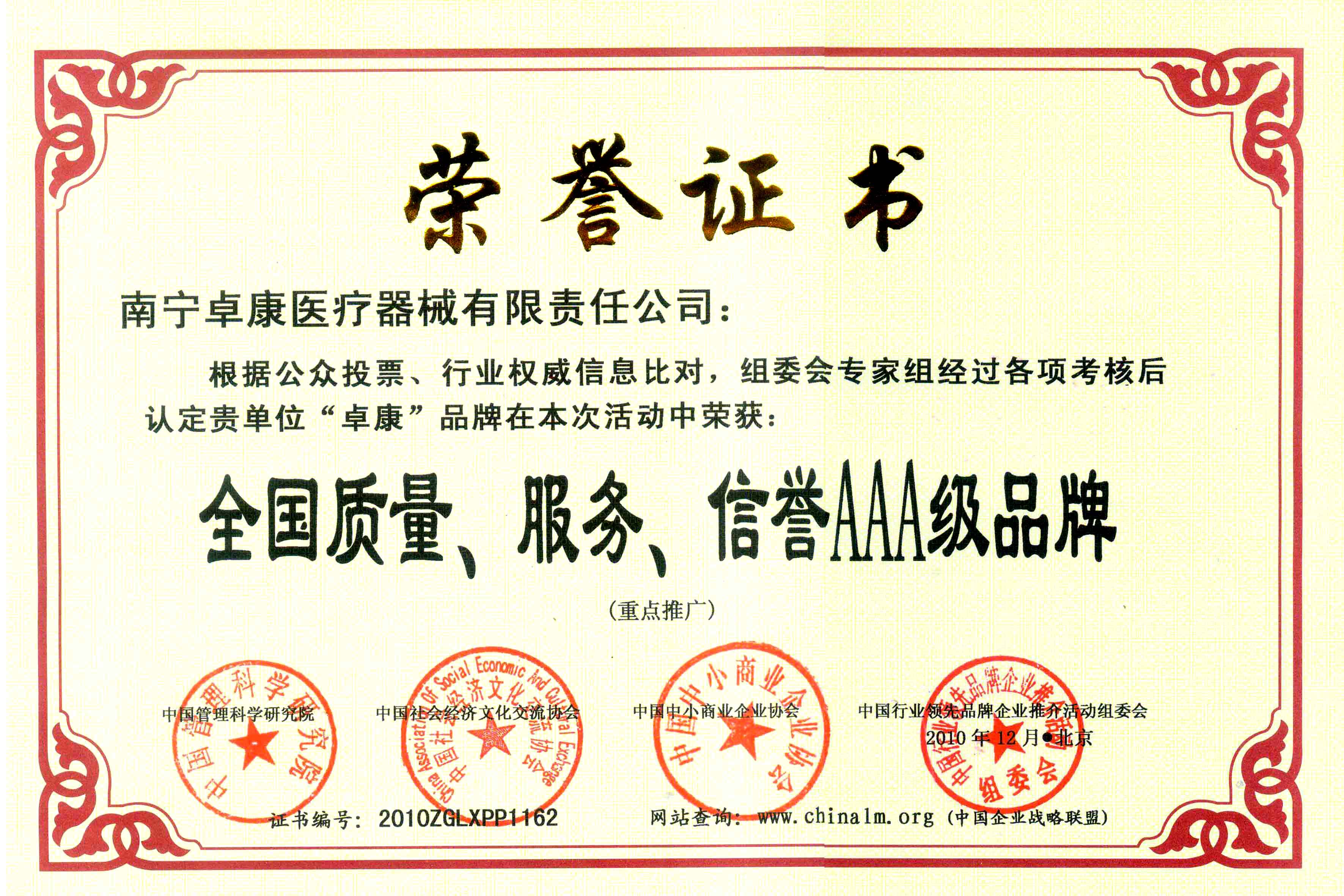 陸江榮獲引領行業發(fā)展杰出貢獻人物證書 --------卓康公司榮獲全國質量、服務、信譽AAA級品牌證書