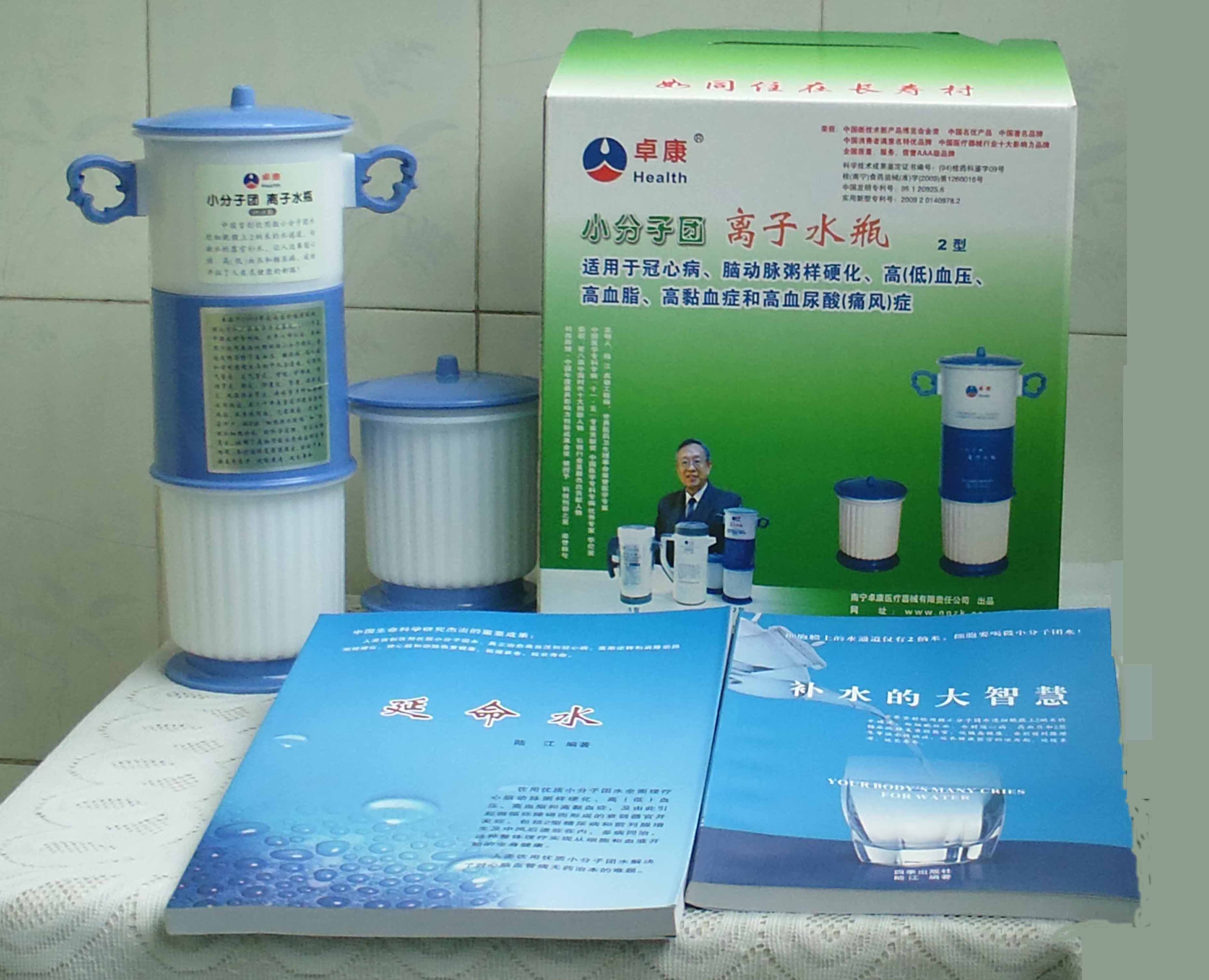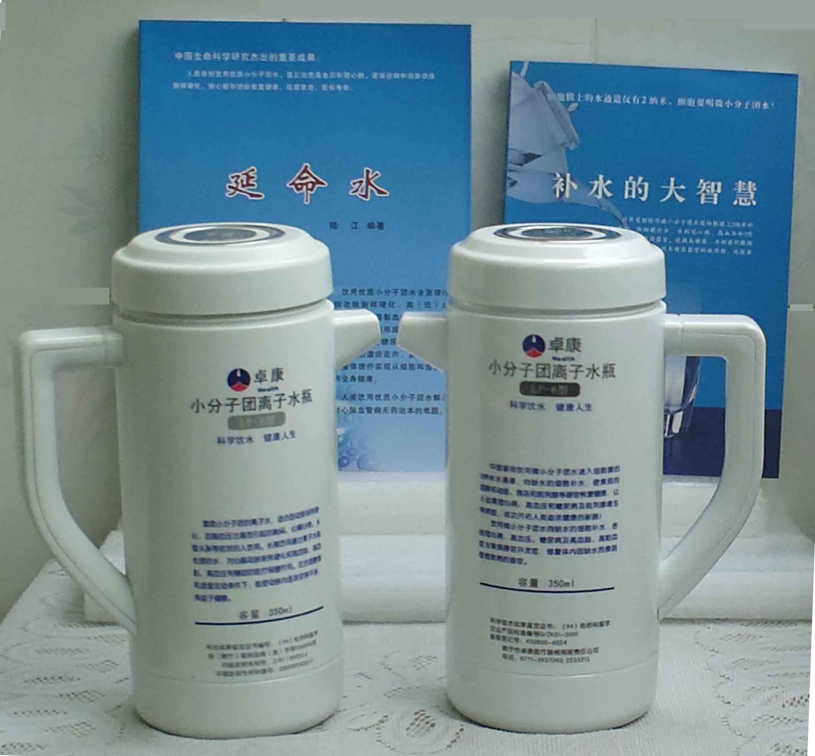 本品大量用戶的使用效果表明,能治愈冠心病、腦動脈硬化、原發(fā)性高(低)血壓、高血脂、高粘血癥、高血尿酸癥(痛風)和2型糖尿病、衰弱器官并發(fā)癥(前列腺增生、腎衰與尿毒癥)及中風后遺癥等療效好。產品配信譽卡。使用壽命30年,不換芯,易清洗。團購優(yōu)惠。從郵局匯款,匯費1%,地址按本頁下方地址、聯系人寫。從銀行匯款,請點擊[聯系匯款]欄,從工商銀行匯款,建設銀行、農業銀行匯款,均免收匯費,匯款后20--30分鐘內發(fā)短信,可用微信轉帳,均免匯費,微信號即手機號13768308380。匯款后,告知你的姓名和地址,我公司聯系人手機號是:13768308380卓康牌離子水瓶為我公司獨家生產,郵購產品配《補水的大智慧》彩印書一本,另配四季出版社出版的新書《補水的大智慧》一本,并配光盤一張(含央視主持人釆訪陸江的對話視頻)。目前市場和"淘寶網"上有人兜售假冒的偽品,望讀者審察辯別真偽,造假者剽竊假冒本公司的各種證、獲獎獎項、專利號和外包裝盒上的中英文字,包括科技成果的鑒定意見等,請讀者注意防偽。如何識別假貨?已經買了假貨怎么辦?(請點擊[打假掠影][打假掠影])。